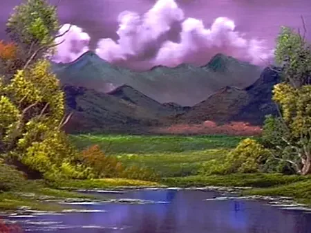 One step forward - 50 steps back. I wasn’t a big fan of this one, mostly because this was another one that was done on a black canvas (pretty hard to translate that over to acrylics. The mountains were OKAY but then once again, when I got to the foliage in the front, I started to lose it. I just can’t seem to get them to do the way I envision them, so I end up resorting to making them into blobs of brushstrokes. Not my best…