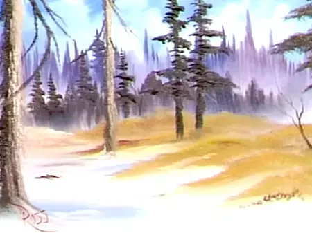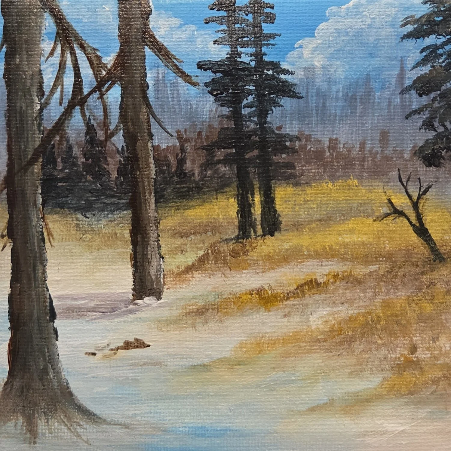 I think I did a good job at replicating this one. I tried to keep the distant trees and hills very misty to keep that atmospheric feel like in Bob’s version. I think the yellow grassy areas have been improved since previous work and the blending there seems to work really well. I think what could’ve improved is my branch work on those trees. It’s tough to get a delicate branch line with acrylic because you need the perfect amount of paint and water on the brush to make sure you can get that little branch done in one swipe. I ended up over-lining them because I didn’t have enough water on my paintbrush I believe. Anyways, this is a nice one I think!